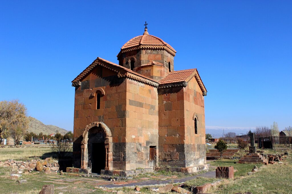 The church of S. Astvatsatsin is situated adjacent to the entrance of the cemetery and monastic complex at Talin and near the main cathedral. It is a small cruciform central-planned building with a Byzantine-style single red tile, octagonal umbrella domed roof that is centered over the church. The dome sits above an octagonal drum that […]